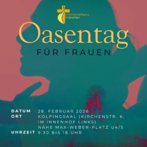 Zeit für dich. Zeit für dein Herz. Zeit für Gott. Ein Tag wie eine Oase: wohltuend, stärkend, klärend. Für Frauen, die sich selbst und Gott neu begegnen möchten. Der Oasentag für Frauen ist eine bewusste Pause vom Alltag – ein Tag zum Innehalten, Auftanken und Hinspüren. Ein Tag, an dem deine Sehnsucht Raum bekommt. Was […]